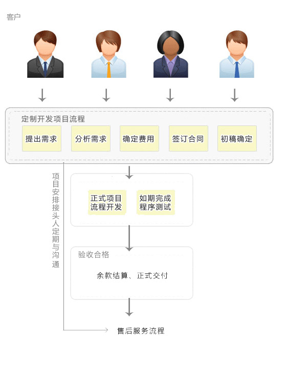 客戶簽發(fā)《模板驗收合格書》后,將所有項目文件遞交客戶;或應(yīng)客戶要求,將項目直接上傳至客戶服務(wù)器上。至此,項目建設(shè)過程全部結(jié)束??蛻羧缧韫緸槠溥M行項目建設(shè)后的日常更新和維護工作,需另外與公司簽訂《項目更新維護協(xié)議》。